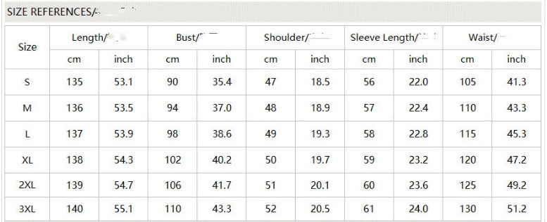 Taille : Remarque : 1. Les tailles asiatiques sont 1 à 2 tailles plus petites que les tailles européennes et américaines. Choisissez la taille supérieure si vous êtes entre deux tailles. Veuillez prévoir une différence de 2 à 3 cm en raison de la mesure manuelle. 2. Veuillez consulter attentivement le tableau des tailles avant d'acheter. Si vous ne savez pas comment choisir votre taille, veuillez contacter notre service client. 3. Comme vous le savez, les couleurs affichées sur les différents ordinateurs peuvent varier légèrement par rapport aux images suivantes. Contenu : 1 peignoir. Image du produit :
